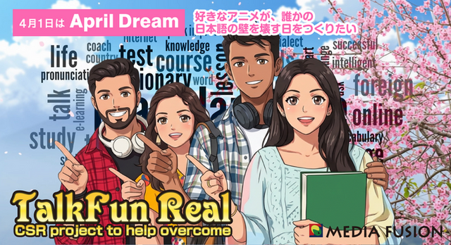 株式会社メディアフュージョン(本社:大阪市北区)は、在日外国人支援プロジェクト「TalkFun Real」を通じて、2030年までにSNSで10万人の在日外国人が「日本語って楽しい」と感じる瞬間をつくることを、本日ここに宣言します。