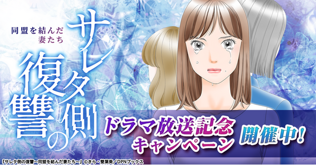 DPNブックスの人気作品『サレタ側の復讐~同盟を結んだ妻たち~』(作画:きら、原作:雙葉葵)の実写ドラマ放送を記念し、各電子書店での無料話増量キャンペーン、なにとぞ編集部公式Xでのプレゼントキャンペーンなど様々なキャンペーンを開催中です!