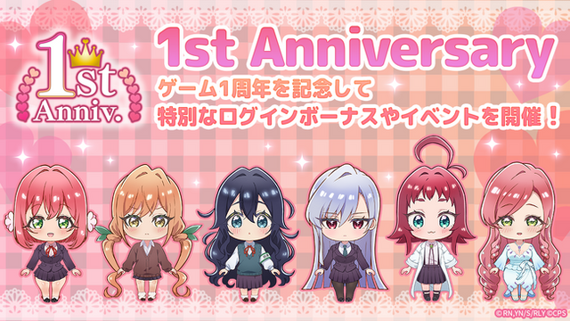 4月1日(水)より1stアニバーサリーを記念して、「1周年記念 ログインボーナス」を開催しました。期間中のログインでガチャチケットや無償ダイヤを入手することができます。毎日ログインして報酬をゲットしよう!