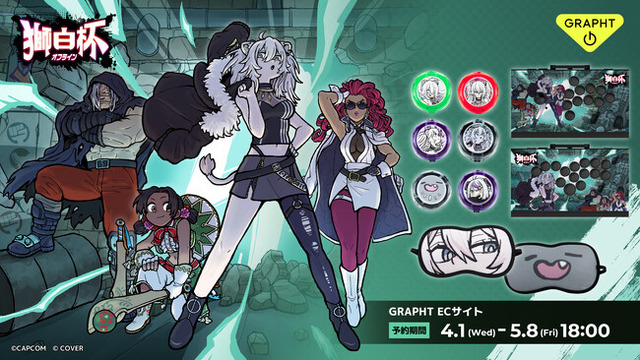 スペシャルアイテムとして、『GRAPHT REMIXERS iO』と「獅白杯 - オフライン -」がコラボレーションした『iO 獅白杯 - オフライン - Edition』上パネル(レバー/レバーレス、Mサイズ対応)をはじめ、三和電子製24φアーケードコントローラー用交換ボタンに歴代「獅白杯」のキービジュアルやラプラス・ダークネス、SSRBをあしらった全6種の2WAYコラボボタン、さらにリバーシブルアイマスクをラインアップします。