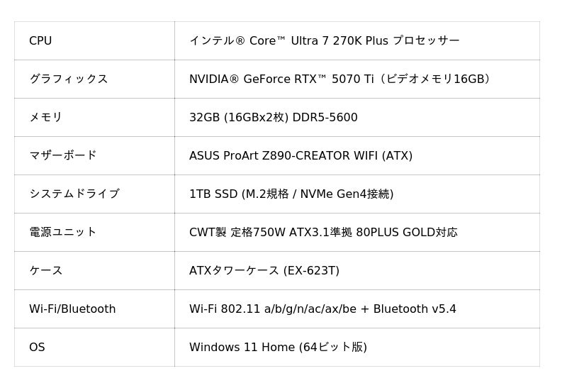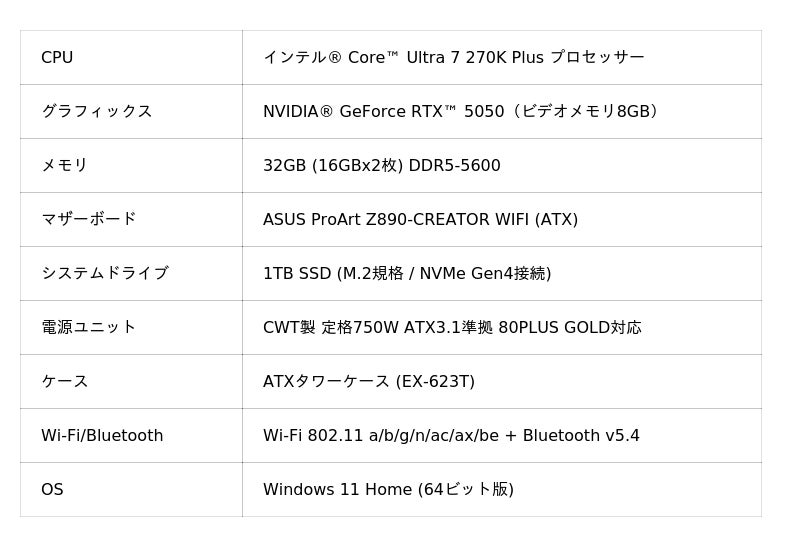 最新の「インテル(R) Core(TM) Ultra 7 270K Plus」を搭載[画像2: https://prcdn.freetls.fastly.net/release_image/82557/1084/82557-1084-9738046d6758a6c561aae2d3d0e6fffd-750x232.png?width=536&quality=85%2C75&format=jpeg&auto=webp&fit=bounds&bg-color=fff ]