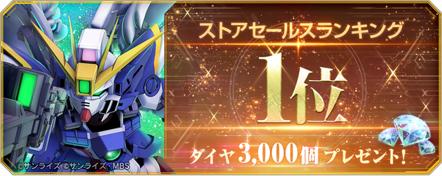 ストアセールスランキング1位を記念して、ダイヤ3,000個を全員へプレゼント!
