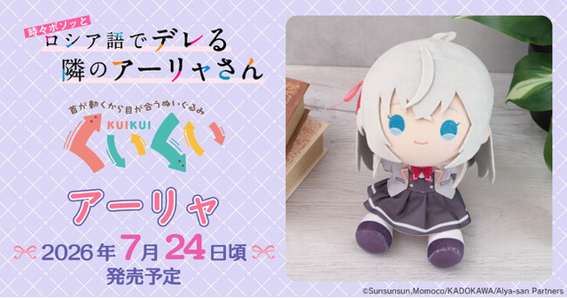 アーリャさんが「くいくい」になって登場!「くいくい」とは、首がくいっと曲がるお座りぬいぐるみ。あなたを優しく見上げます。目が合いやすい角度でデスクの上に置いたり、お出かけ先でポーズをとって撮影したり…自由で癒しの時間をお届けします。