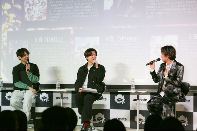 イベントには「Anthos*」の影河凌駕役・濱野大輝さん、結城眞紘役・山下誠一郎さん、八代刹那役・堀江 瞬さんが登壇。シリーズの歩みを振り返るトークや、作品が完結した今だからこそ語れるエピソードを披露しました。