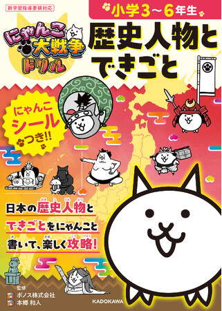 今回は、累計25万部を突破した「にゃんこ大戦争でまなぶ!」シリーズから派生した、学習ドリルシリーズの最新作『にゃんこ大戦争ドリル 歴史人物とできごと』が登場。