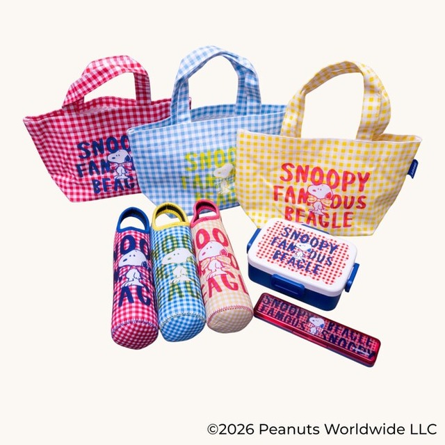 世界中で愛される「スヌーピー」のデザインと、ポップなカラーリングのギンガムチェック柄を採用することで、毎日のランチタイムに楽しさと快適さを提供します。