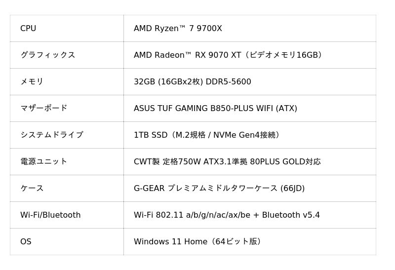 AMD Radeon(TM) RX 9000 シリーズ グラフィックスカードを搭載[画像3: https://prcdn.freetls.fastly.net/release_image/82557/1085/82557-1085-e81192a0725589efbf24ceedc495252b-380x171.png?width=536&quality=85%2C75&format=jpeg&auto=webp&fit=bounds&bg-color=fff ]