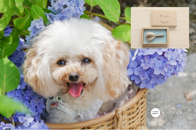 当社では「ペットの抜け毛で作る小さな筆」という商品名でペット筆の販売を行っております。25年ほど前、友人の家で飼っていた犬の毛で筆を作りプレゼントしたことがきっかけです。「またあの子の毛のぬくもりを感じれるなんて、うちの家宝だわ。」と、友人のお母さんがとても喜んでくれいたのがとても印象的でした。もしかしたら同じようにペットを飼っている方にも喜んで頂けるのではないかと思い、販売を思い切って始めました。我々が培ってきた筆製作の選毛の技術を使えば、ペットのカットした毛だけでなく、普段ブラッシングした時に出る抜け毛からでもペットの筆を製作することが出来るからです。