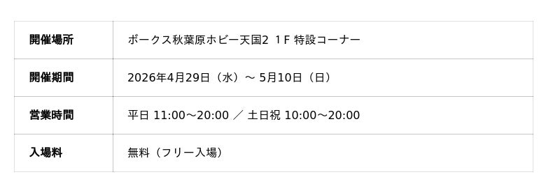 ※展示内容や商品情報は予告なく変更になる場合がございます。最新情報はボークス秋葉原ホビー天国2、または弊社公式X(旧Twitter)をご確認ください。