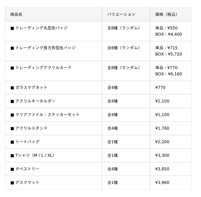 開催期間中、会場にてイベント関連商品を 3,000円(税込)ご購入ごとに、「ランダムポストカード(全10種)」を1枚プレゼント![画像7: https://prcdn.freetls.fastly.net/release_image/67495/186/67495-186-4d31ed61474314d12926febfa41e65b0-1920x1152.jpg?width=536&quality=85%2C75&format=jpeg&auto=webp&fit=bounds&bg-color=fff ]