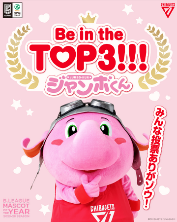 3/19(木)より4/5(日)まで開催された「マスコットオブザイヤー 2025-26」(ファン投票)で千葉ジェッツの公式マスコットキャラクターの「ジャンボくん」が【TOP3】入りをしましたのでお知らせいたします。