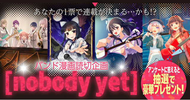 株式会社ブシロード(本社:東京都中野区、代表取締役社長:木谷高明)のグループ会社にあたる株式会社ブシロードワークス(本社:東京都中野区、代表取締役社長:新福恭平)は、バンド漫画読切企画[nobody yet]の開催とともに特設ページを本日4月13日(月)に公開したことをご案内致します。