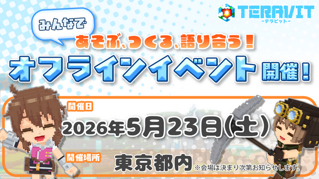 サイバーステップ株式会社が開発・運営するみんなで作るサンドボックスゲーム『テラビット』は、2026年5月23日(土)に東京都内にて、プレイヤーとクリエイター、そしてテラビットチームが集まるオフラインイベントを開催することをお知らせします。