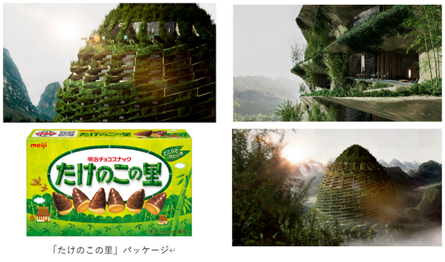 長年親しまれてきた両ブランドは、これまで「きのこ・たけのこ総選挙」などユニークなキャンペーンを展開してきました。2026年3月に分譲された「フォレストヒルズ きのこの山」が「一戸建て」であったのに対し、本企画では「たけのこの里」の形状をモチーフにした「垂直伸長型タワーレジデンス」を展開。「戸建て派 vs タワマン派」という新たな対決構図を、バーチャル空間で具現化しました。