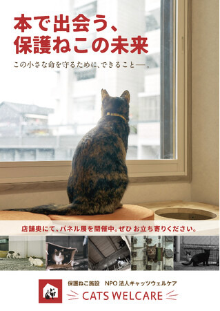 本展示では、保護ねこ活動の現状や課題を紹介するとともに、「猫」にまつわる書籍の提案を通して、本と猫、それぞれの魅力を発信します。来場者の皆さまに、保護ねこ活動への理解を深めていただくと同時に、保護された猫たちと人との新たな出会いのきっかけを創出することを目的としています。