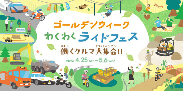 モビリティリゾートもてぎ(栃木県・茂木町)は、2026年4月25日(土)~5月6日(水・振)にゴールデンウィークイベントとして「わくわくライドフェス~働くクルマ大集合~」を開催いたします。