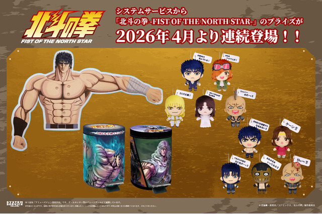 システムサービス株式会社(本社:東京都豊島区、代表取締役社長:田村宗弘)は「北斗の拳 -FIST OF THE NORTH STAR-」のプライズ商品を2026年4月より順次アミューズメント施設にて展開いたします。