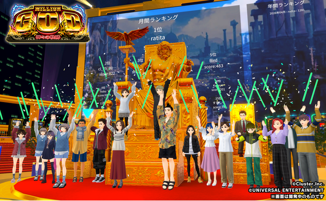 「ユニバーチャルランド」は、clusterのメインユーザーであるZ世代・Y世代(ミレニアル世代)はもちろん、これまでメタバースに触れてこなかった幅広いユーザー層へのリーチを目標としています。実際の遊技機ホールさながらの没入感を、スマートフォンやPCから直感的に操作・手軽に体験できる『メタスロット』をはじめ、メタバース空間を通じた新たなファンコミュニティの形成と、リアルの遊技機ホールへの送客につなげることを目指します。