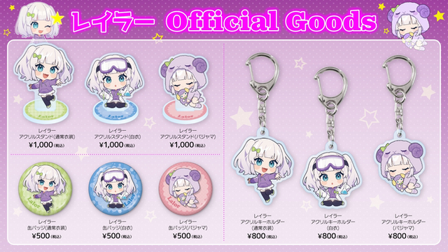 今回登場したグッズは、レイラーの魅力を3つの衣装で楽しめるラインナップ。通常衣装・白衣・パジャマと、それぞれ異なる雰囲気のビジュアルを採用し、ファン必見のアイテム展開となっています。