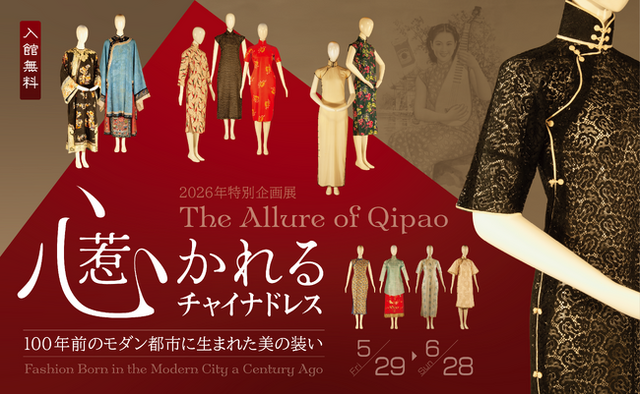 2026年初夏、日中友好会館美術館では、約100年前の中国女性に愛されたチャイナドレスに焦点を当てた『心惹かれるチャイナドレス ――100年前のモダン都市に生まれた美の装い』展を開催します。本展では、チャイナドレスコレクションとして名高い「謝黎コレクション」から、1900~1940年代の代表的なドレスを厳選して展示。併せて、纏足(てんそく)の靴や調度品、手刺繍の小物なども紹介します。入館は無料です。