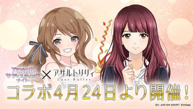 株式会社ボルテージ(本社:東京都渋谷区、代表取締役:津谷祐司)は、カード型サスペンスアプリ「六本木サディスティックナイト」において、アサルトリリィプロジェクト発のアプリゲーム「アサルトリリィ Last Bullet」とのコラボレーション企画を、2026年4月24日(金)より開始したことをお知らせいたします。
