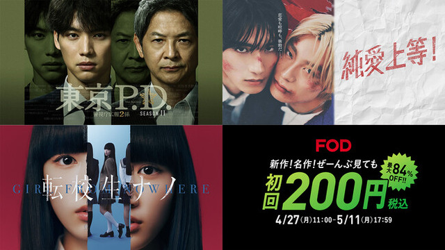 今年のゴールデンウィークは、フジテレビの話題作、FODオリジナルドラマ、注目のBL作品まで。FODならではの豊富なラインナップを、お得な機会にぜひお楽しみください。