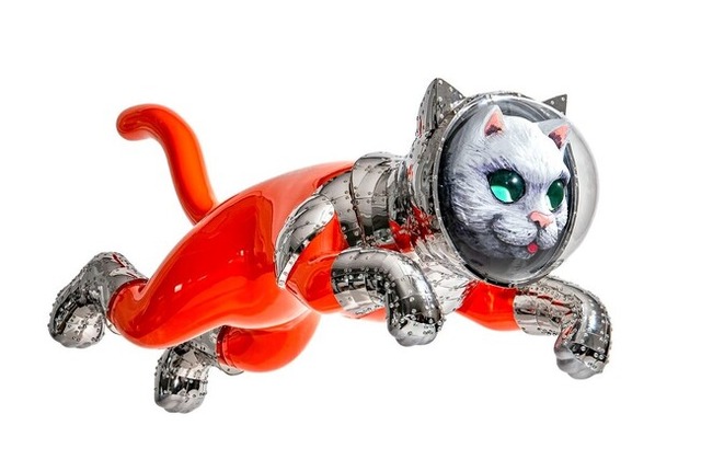 《SHIP'S CAT(Flying)》2024年 (90×47×130cm、 ステンレススチール、FRPほか)