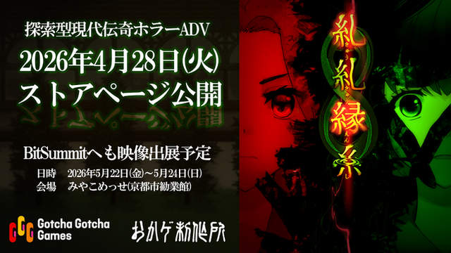 この度、株式会社KADOKAWAのグループ会社である株式会社Gotcha Gotcha Games(本社:東京都千代田区、代表取締役社長:成田聖)より、2026年4月28日(火)に、探索型現代伝奇ホラーADV『糺糺縁糸(きゅうきゅうえんし)』のSteamストアページを公開し、事前ウィッシュリスト登録受付を開始したことをお知らせいたします。