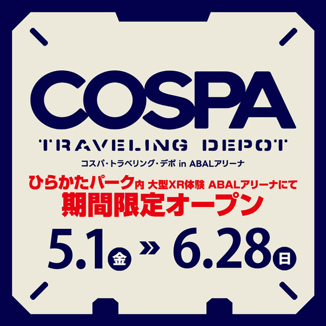 [画像1: https://prcdn.freetls.fastly.net/release_image/99047/1503/99047-1503-63112292f1e1945e2cd051a918001b03-1000x1000.jpg?width=536&quality=85%2C75&format=jpeg&auto=webp&fit=bounds&bg-color=fff ]2026年5月1日(金)~6月28日(日)の期間限定店舗〈コスパ・トラベリング・デポ in ABALアリーナ〉がひらかたパーク内にオープンいたします。